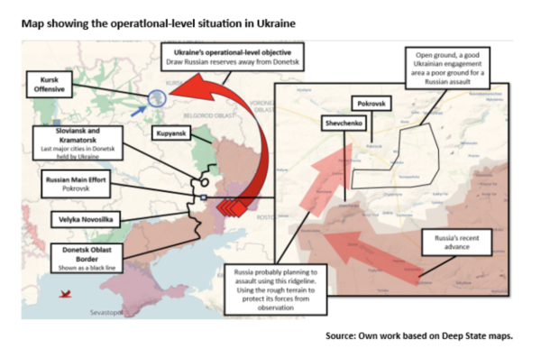 My assessment is still that Pokrovsk is unlikely to fall in the immediate future. Although the Russians have recently advanced significant distances, this is often related to terrain. The Ukrainians falling back relatively large distances in open country to focus their effort on defendable terrain like towns, villages or wooded country. To-date we have not seen a Ukrainian collapse, and this seems unlikely based on current reports, and because Russia’s commanders continue to dissipate effort against many different targets.
