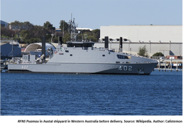 RFNS Puamau, a Guardian Class patrol boat donated to Fiji by Australia is still stuck on a reef near the Lau Islands. It ran aground two weeks ago and appears to be badly damaged. This week it was reported that Australia has sent salvage equipment to Fiji to help re-float the vessel.