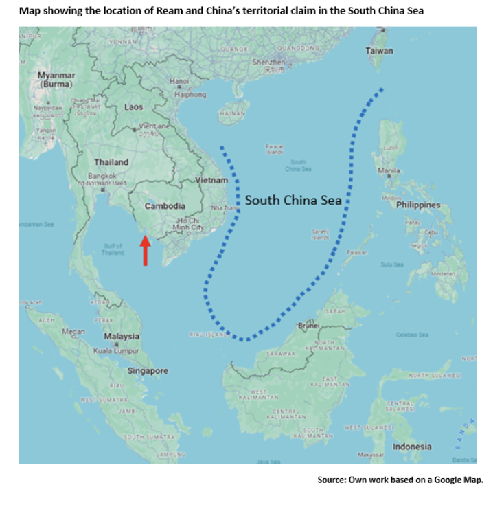 Ream is China’s second overseas naval base, the first is an Indian Ocean base that opened in Djibouti in 2017. Ream’s position demonstrates China’s interest in the South China Sea either to protect vital maritime trade routes or to enforce its claim to areas like Rifleman’s Bank and James Shoal, at the southern end of the ‘9 Dash’ line.