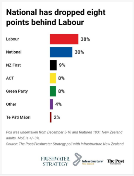NZF + National + ACT are re-elected and cement into place their 19th Century White Settler privilege and continue to strangle the common good for their donors interests. Massive State Sale Programme begins and permanently mutilates the State.