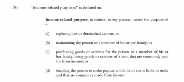 What do black and white thinkers make of that? Drawing down an overdraft or using a credit card are apparently the same as earning income. One of the tests is that the money is used for ‘income related purposes as per the ACT: