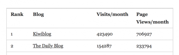 The latest blog rankings are out, The Standard are no longer making their stats publicly available to Ken for the blog rankings and that makes The Daily Blog the second largest blog…