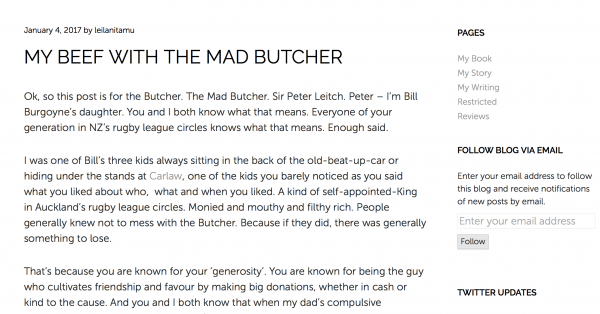 So that is what I think of this, maybe Sir Peter Leitch has faults, but why go on about it now, why was this not written about earlier?