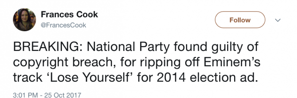 http://www.radionz.co.nz/news/national/342383/music-rights-specialist-backs-national-over-eminem-esque