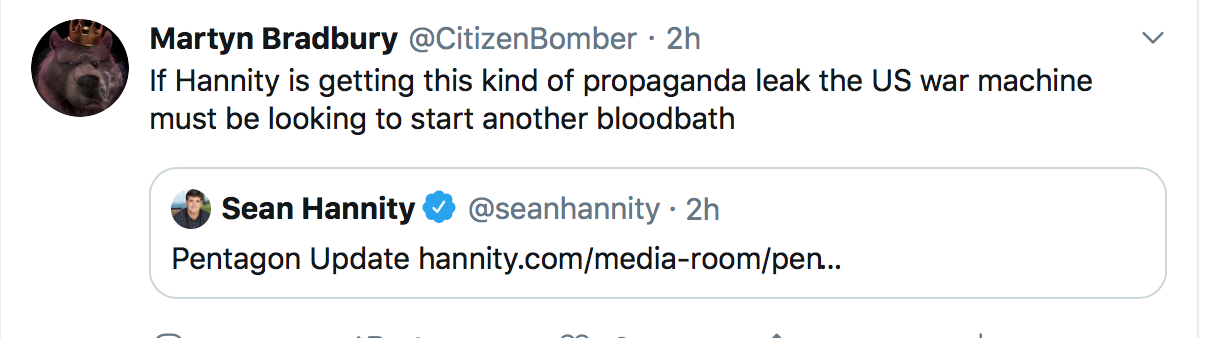 …this sudden declaration to pre-emptively strike was immediately followed by Right Wing pundits in America being leaked war propaganda…