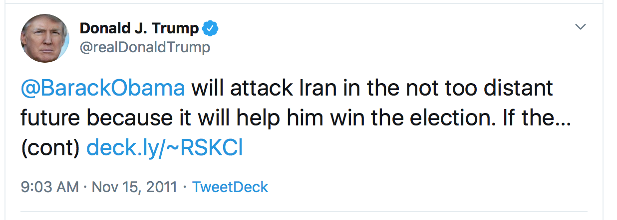 Jesus fucking wept! Trump has just launched action that could be the start of war and in a twist of fate, Trump himself actually foreshadowed this ver action in a tweet he made in 2011…