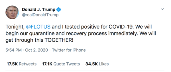 BREAKING: TRUMP HAS TESTED POSITIVE FOR COVID!!!
