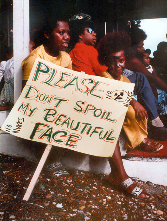The real “David” was the ordinary people of New Zealand who exerted extraordinary pressure on the government to deliver. The barrages of letters from citizens, constant lobbying by peace campaigners, local councils – such as right here in Devonport — declaring themselves nuclear-free, the door-knocking petitioners – and, of course, the spectacular protests.However, in my few minutes I would like to talk about the Pacific context, as this was my background. While the New Zealand campaign and success was tremendously inspirational for the Pacific and globally, it should not be forgotten that some small Pacific countries and communities were actually ahead of the game.