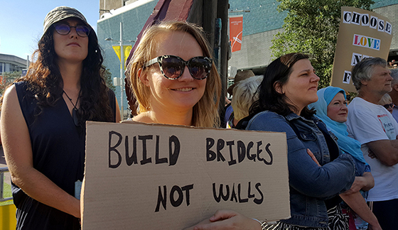 The protest rally was held in Auckland’s Aotea Square yesterday in solidarity with those affected by President Trump’s executive orders to implement a 90-day ban on people from seven Muslim majority countries and 120 day ban on all refugees, with an indefinite ban on Syrian refugees.