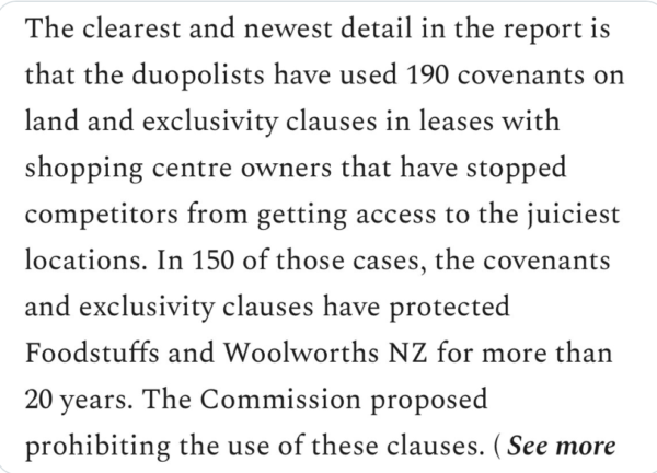 Sadly, much the same could be said of the supermarket duopoly, where any ‘over-regulation’ of NZ’s supermarket duopoly is a threat to multinational interests.