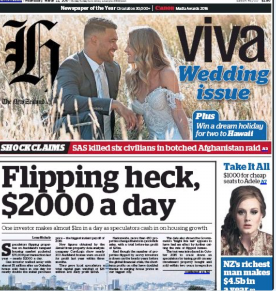 The Herald are obsessed with the housing market this year. Now its installment 25 of “flipping” houses. You know, buy and sell in the same day, quick bucks and then some, raise the average price of houses, see a few more people out on the street…..oh hang on that is not mentioned. The Herald also love interactive guides on how you voters who own houses have got rich thanks to the Party.