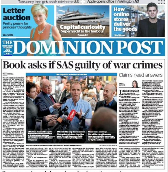 Compare NZ Herald coverage of John Key’s war crimes to the Dom Post