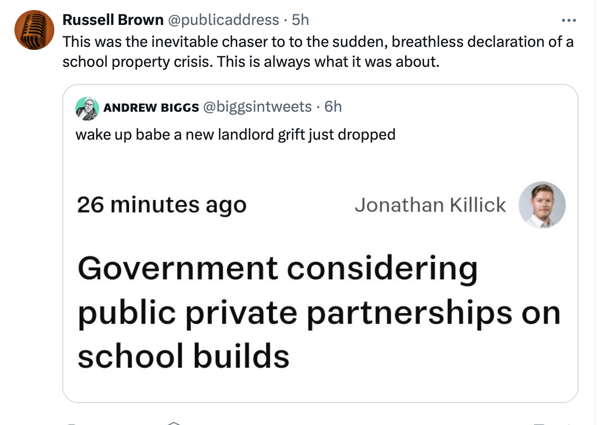National need to find a billion per year to fund tax cuts for the richest amongst us so the response by this Government to Infrastructure upgrades is to cancel them and demand privatisation to get a 1980s upgrade for 2028.