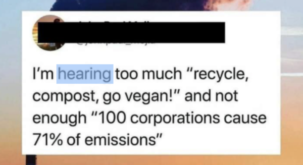 Yes, but that’s only part of the problem. Yes, our part to play is minute compared to the big players. There’s only some much you can recycle, can compost. Its the attitude that counts. And it all helps. But aren’t we all complicit, to a greater or lesser degree. Almost everything has a carbon footprint, some things more than others. Most of us know what, or by now should know, but modifying our behaviour, giving up those things is hard, now so entrenched in our lives that for many such consumption is seen as the norm, or worse, an entitlement. We devise fancy credit systems to mitigate impact and look to governments to regulate the behaviour of big players but surely the buck stops with consumption, conspicuous or otherwise.