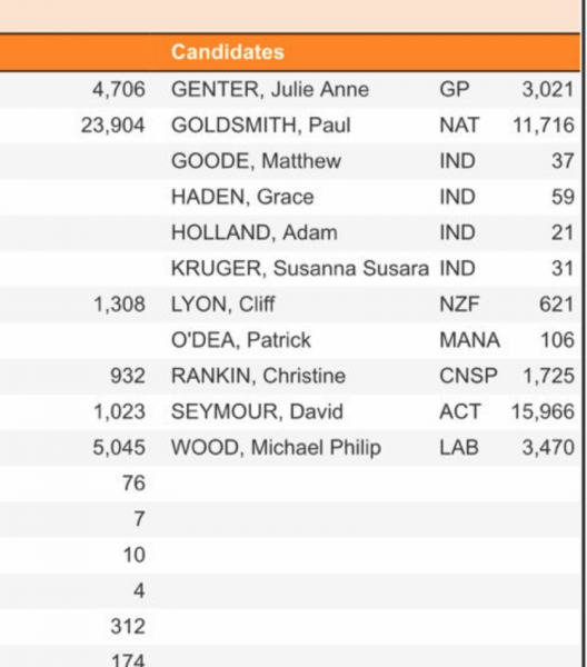 Otherwise, if Seymour’s musings on ‘The Nation’ on 10 June come true, and ACT polls 1.2%(or more), then Seymour brings in an extra MP on his “coat tails”. That would give National an extra seat in Parliament, via their proxy party.