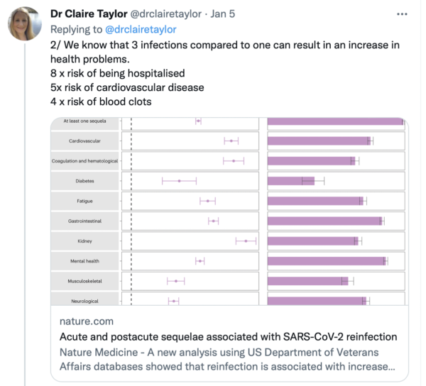 That’s right – every single time you catch Covid not only do you risk long Covid each time, but the virus makes you sicker and weaker!