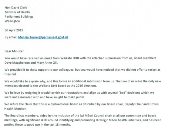 Dave Macpherson – Media Information: Waikato DHB Board members Gill & Macpherson release letter to Health Minister regarding his intention to sack Board