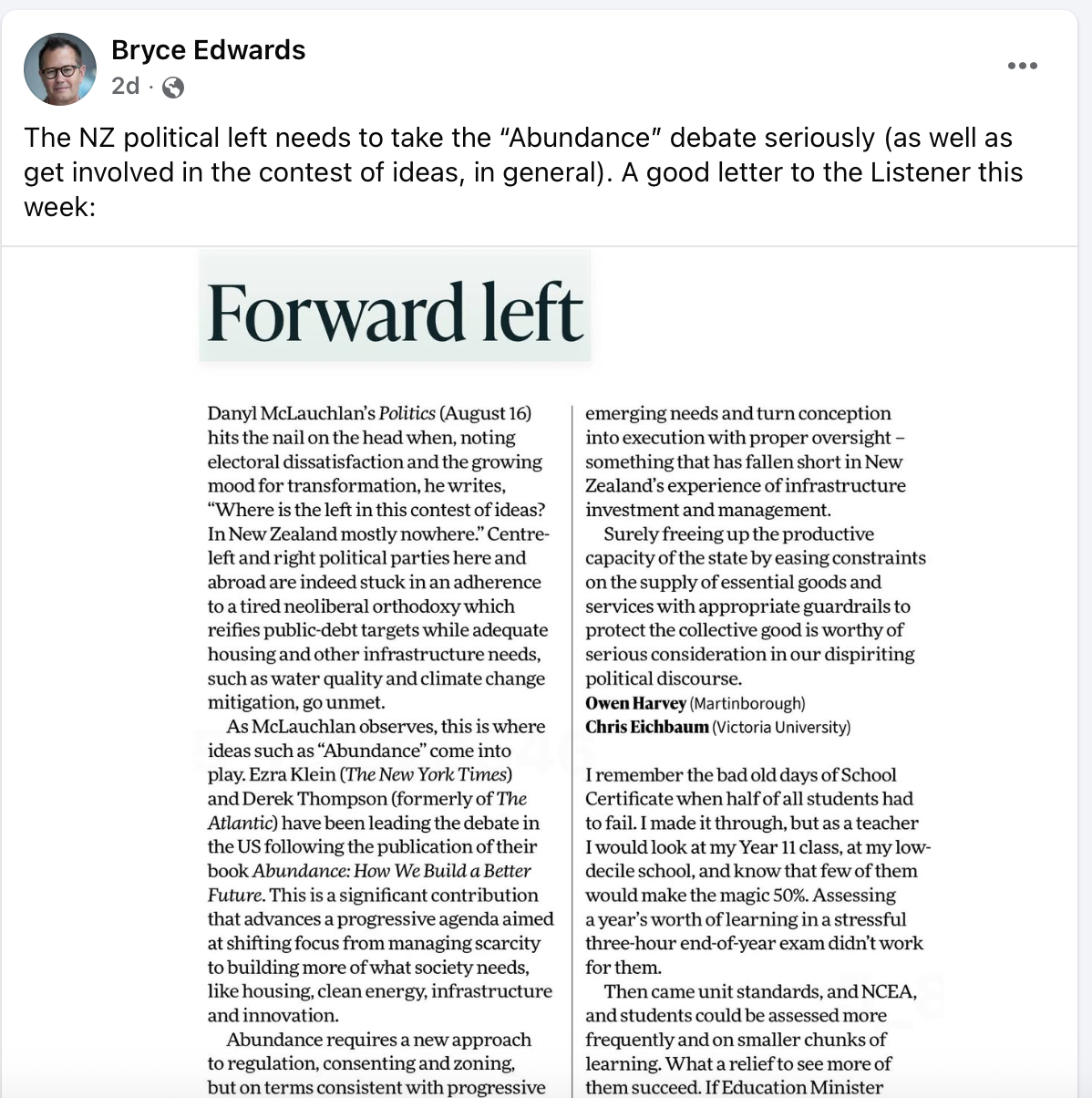 “Gatekeepers like Edwards, RNZ, The Listener control where the debate can go on the left so those arguments don’t go very far.”
