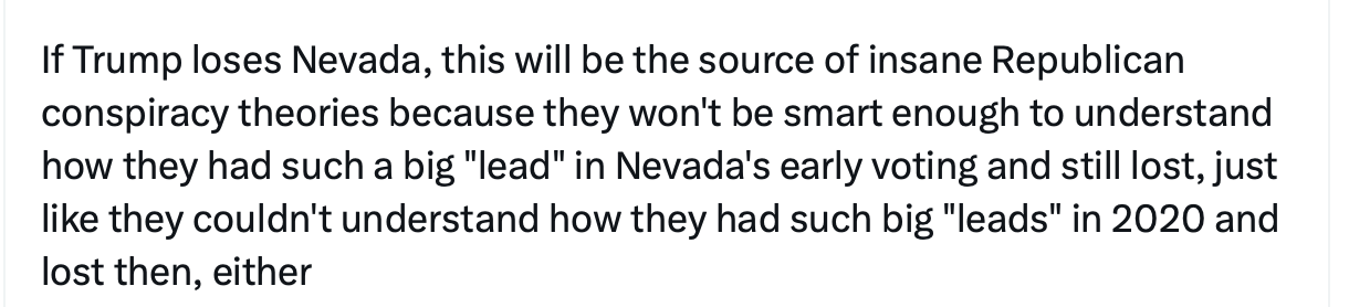 …my thoughts are Trump is preparing MAGA to immediately attack any Harris win as a theft of the Presidency…