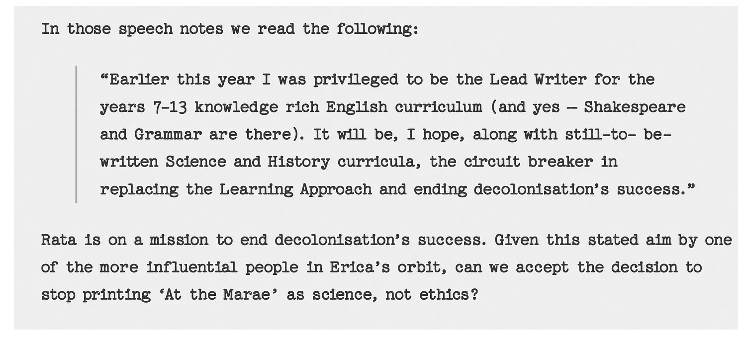 Rata rails against the “Learning Approach” and decolonisation, the “political agenda to transform New Zealand”.