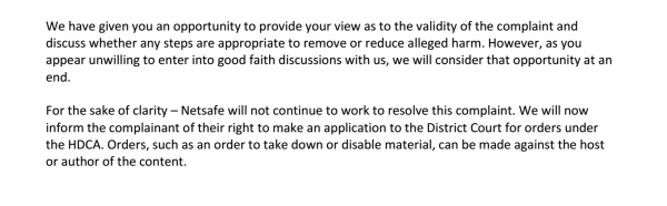 Netsafe contacted me with the following veiled threat…
