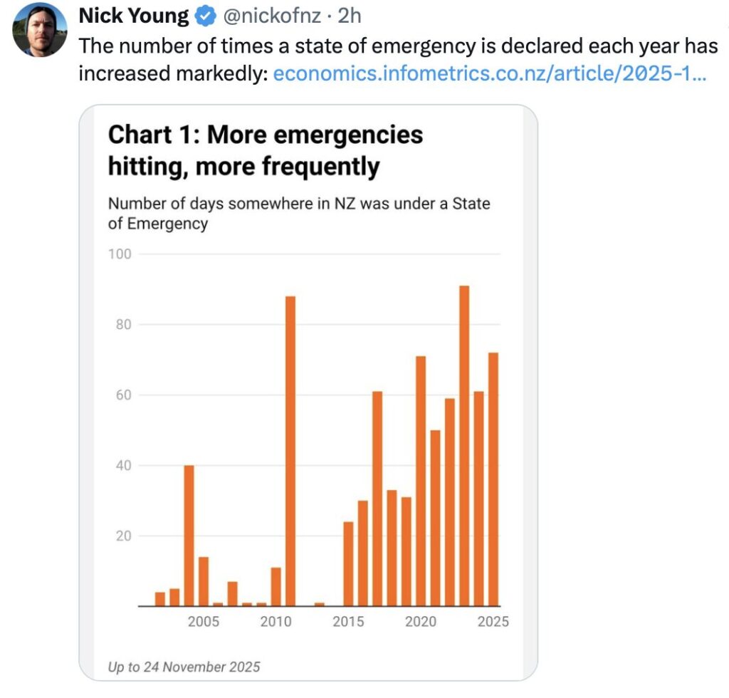 This is the age of consequences and the acknowledgement that it just gets worse from here on demands extra funding for Civil Defence and a total review of how that needs to work and resource Marae, RSAs and Schools into being used as central community hubs of resilience when these events strike.