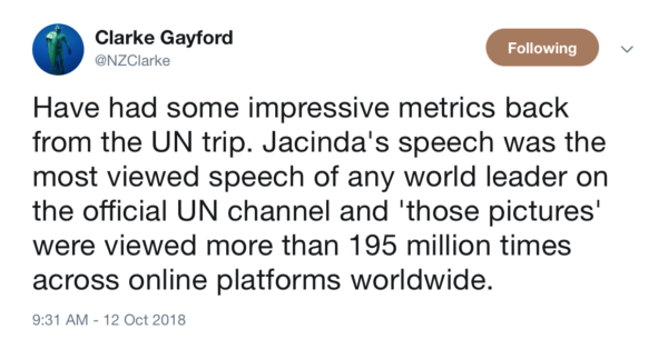 For those claiming Jacinda’s UN appearance with Neve was meaningless – here are the stats