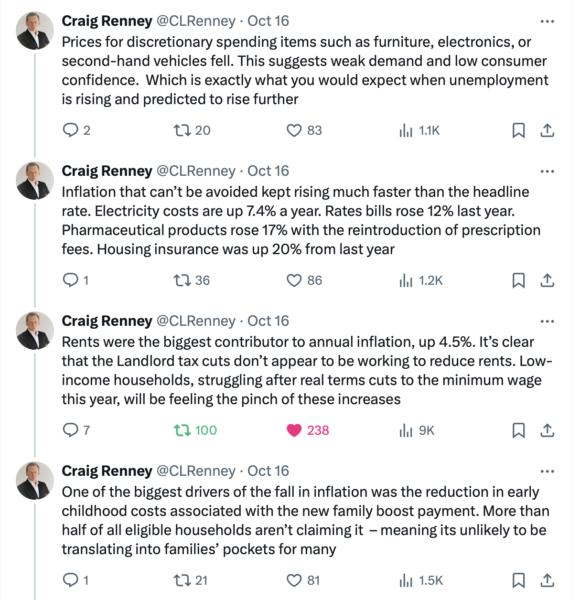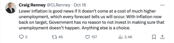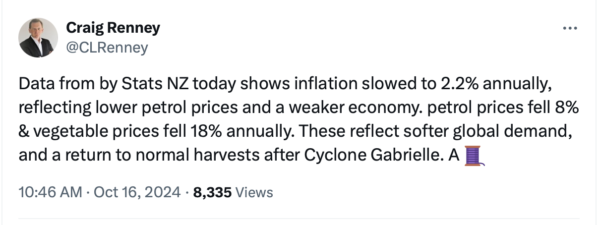 The drop of inflation followed by OCR cuts have been seized upon by the Government as proof positive their borrowing of billions in tax cuts, landlord tax breaks and slashing of public services shows NZ is right on Track.