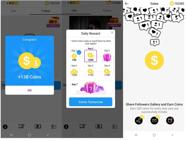 - Earn free coins by following others or like other people’s posts. You can also earn free coins by sharing your Followers Gallery with others.