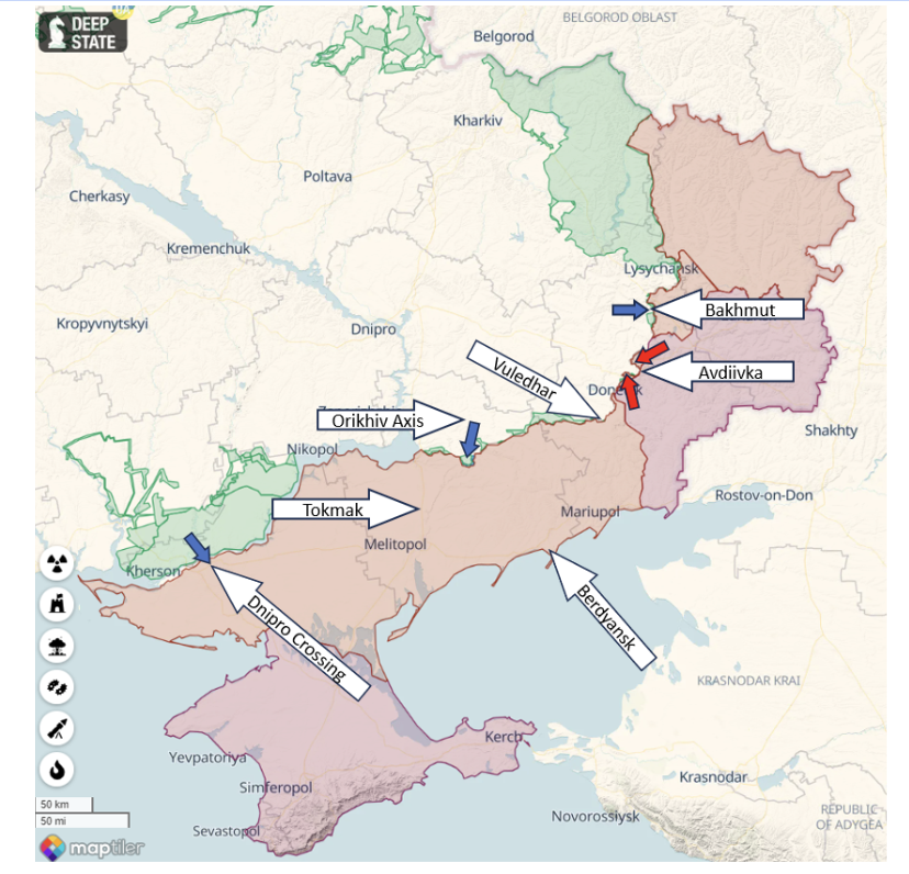 Russia continues fighting hard to encircle Avdiivka. Ukraine’s new long-range ATACMS missiles supplied by the United States make an impact and a surprisingly large Ukrainian crossing of the Dnipro River all indicate that the war in Ukraine remains intense and is far from slowing down. The big question this week is if Russia has weathered Ukraine’s offensive or if Ukraine still has some fight left.