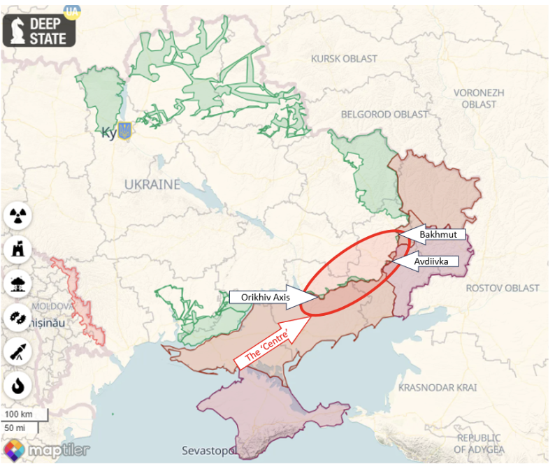 Currently, the situation is tough but Ukraine is far from being defeated, activities this week providing evidence that Ukraine is still in the fight. For instance, Ukraine continued to attack Bakhmut and has attacked and gained ground on the Orikihiv Axis. Likewise, Ukraine has defeated large Russian attacks at Avdiivka and Vuledhar as well as many small attacks across the frontline. Counting losses is difficult but based on Open-Source Intelligence (OSINT) we can be reasonably certain that Ukraine retains significant combat power. Also, Ukraine has crossed the Dnipro River and may be able to produce unexpected results possibly taking advantage of Russia’s operational focus on Avdiivka to turn the southern flank. The general’s statement is also probably designed to condition international expectations, so that if the operation fails it is not a surprise but if on the other hand the operation is successful, its impact on international supporters is increased.