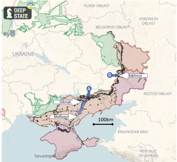 - The Orikhiv axis pushing south towards Tokmak and Melitopol.