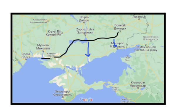 If successful, both options isolate Crimea and the Russian troops occupying the south-east who we know are logistically isolated, with low morale. Further, this area is riddled with Ukrainian partisan activity that helps reduce Russian combat power.