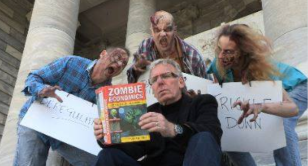 What we are seeing first with the austerity budget , the the preliminary tax review release that will not change GST or Corporate tax and now with the adoption of National’s public/private partnership model is that the Zombie economics neoliberalism which Labour gave birth to in 1984 is alive and well and still stalks the corridors of our parliament.