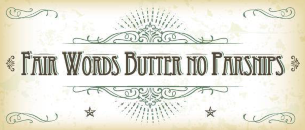 Another was “Fair words buttrer no parsnips” meaning talk is cheap. You can say whatever fair words you like, but without action your words are meaningless.