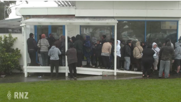 The first was on the queues of people lining up at the Manurewa MSD office on Thursday to get emergency assistance .Some had been there, in the cold and rain since 2 am.