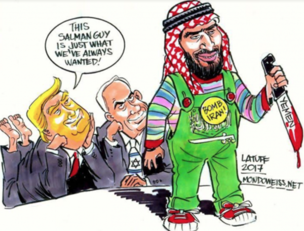 This ‘toxic trio’ cartoon, my labelling, should warn us about what a dangerous time we live in. The US, Israeli and Saudi regimes are close allies. This relationship began long before Trump. It’s not just those 3. The cartoon should refer to Brazil under its new president Bolsonaro. It should refer to the UK , a major exporter of weapons to Saudi Arabia.