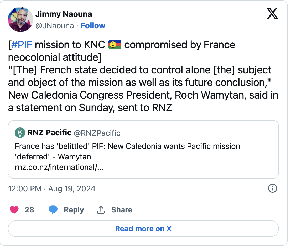 France’s apparent decision to restrict the PIF’s fact-finding mission to New Caledonia, leading to its postponement, has in effect stifled the possibility of meaningful statements coming out of the leaders’ engagements at this week’s forum. Without being adequately briefed on the situation, a further planned high-profile visit of PIF leaders to the country to add impetus and direction to peace talks has been made difficult.