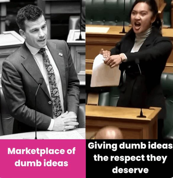 The Trump acolyte Winston Peters and his echo, Shane Jones, make racist comments in the House. Result – nothing. Julianne Genter acts threateningly to another MP. Result – reprimand in the form of a wet bus ticket. Maori Party stand up for their people by doing a haka, which was wonderful to watch, to highlight the racist Te Tiriti Principles bill that Seymour wanted to introduce into the law and the white privileges committee who resent Maori standing up for themselves, punish three of its members by recommending suspension.