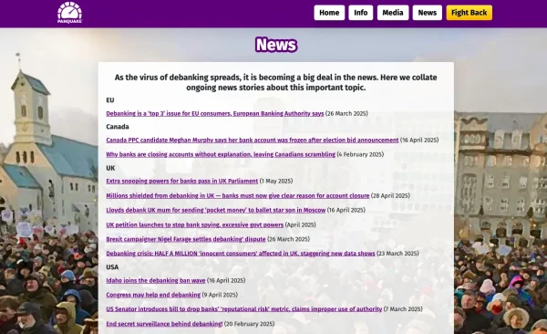 We have been tracking global news stories and collating the latest headlines to hit the media at this page as the debanking crisis takes the world by storm. If you also have been subjected to bad treatment by a bank, you can share your story with us and we will publish it anonymously.