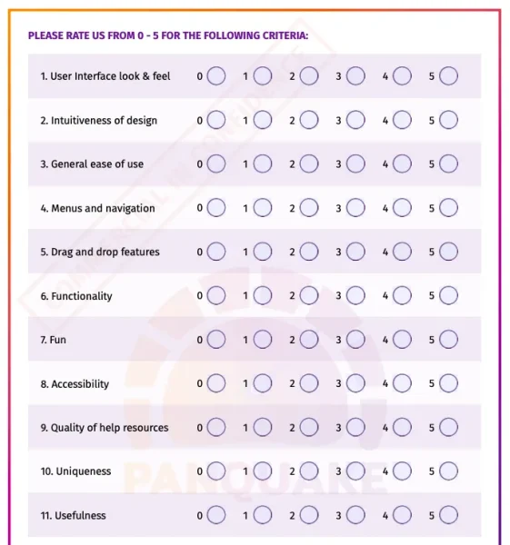We are collecting our test user’s impressions, thoughts and suggestions and incorporating them in preparation for future Panquake releases. This is a really big deal for our project and you, our community, and a great sign of things to come. Here is a portion of one page of the feedback form our external test users fill out and send us once they’ve had a chance to play with Panquake: