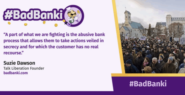 Suzie: So we’ve recently launched a campaign in support of our lawsuit, which you can find at badbanki.com. Banki with an i Banki, B-A-N-K-I is the Iceland word for bank. And at that website, you can learn about the background of our lawsuit, how this has come about, the steps that we’re taking to, to try and galvanize people into understanding that in together, enforce we actually can have a voice against these banks. As an individual customer, there’s a very skewed power dynamic, but together as a group, we can do something about it.