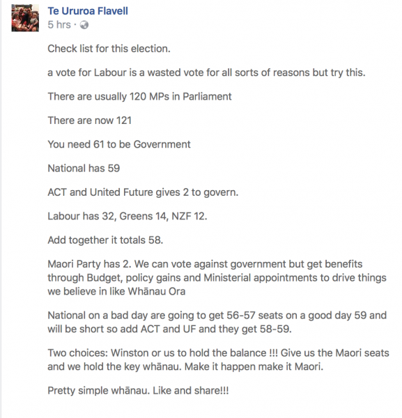 Like Te Ururoa says, share this so that all Māori know that when you vote for the Māori Party, you are voting for another National Government, and do yourselves a favour in the Waiariki and vote Te Ururoa out. Give your vote to our man, Tamati Coffey for Waiariki in the Labour Party.