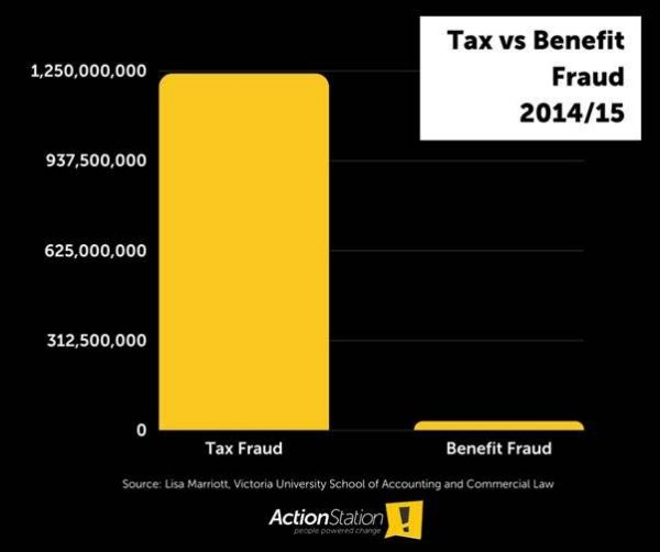 The same contrast applies to beneficiaries and tax dodgers. If a beneficiary doesn’t disclose income which would reduce their benefit they are deemed guilty of fraud, dragged through the courts, convicted, publicly shamed and likely to get a jail sentence (to “deter others” from copycat behaviour) compared to the soft treatment of those who cost us billions in undeclared income for tax purposes.