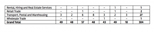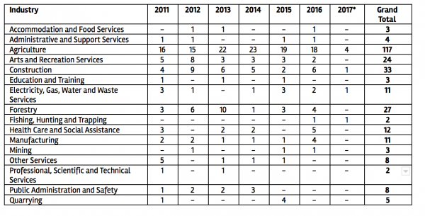 Workplace fatalities by industry: