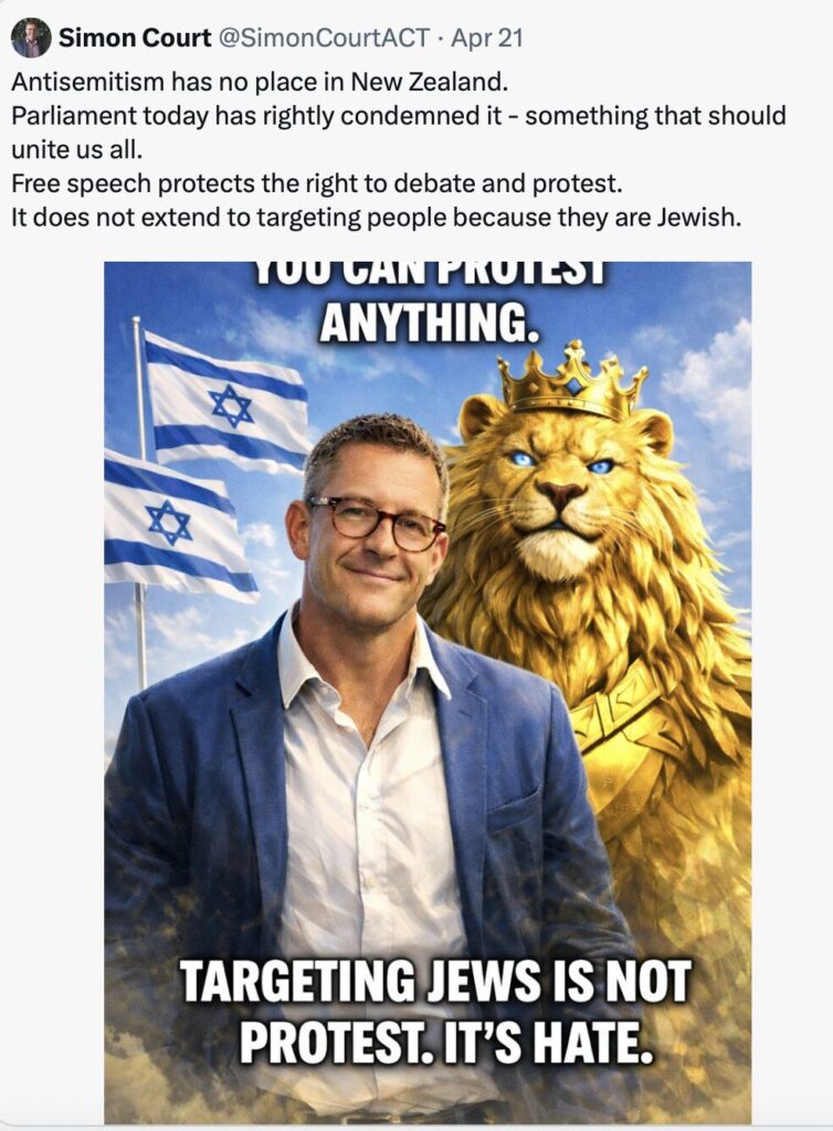 …an AI picture of Simon Court that is as unbelievable as the fact that the large smug golden Lion behind him isn’t smashed with the blood of Palestinian children.