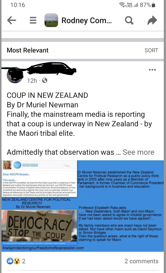 The Far Right Hate Think Tank run by the ghastly Muriel Newman spawns for ACT and they are already using inflammatory language like ‘Tribal Coup’ to describe Co-Governance, and it’s getting local election traction in the more cross burny parts of Nu Zilind…