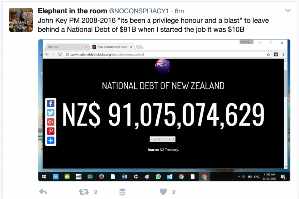 When Key came into power, Government debt was $10billion, after 9 years, it’s now $91billion – and yet the bloody stupid sleepy hobbits still believe National are the better stewards of the economy!