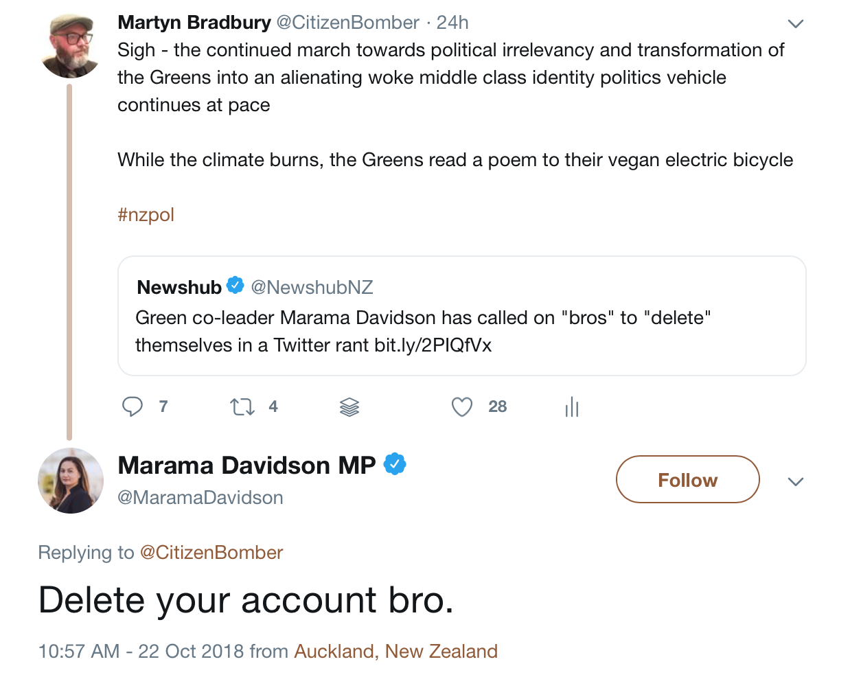 In 2018 Marama went on a Twitter tirade demanding men who didn’t agree with her should delete themselves, I suspect come September 20th she will have been hoping that some of those voters didn’t delete themselves.