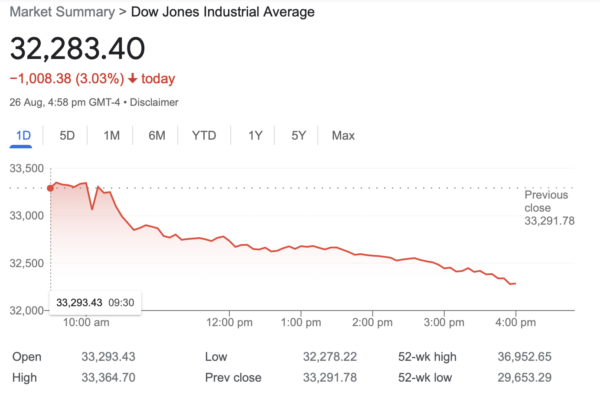 …Fed Boss Powell just pushed the US economy into Jackson Hole with his doubling down on higher interest rate increases and the Dow shat itself…